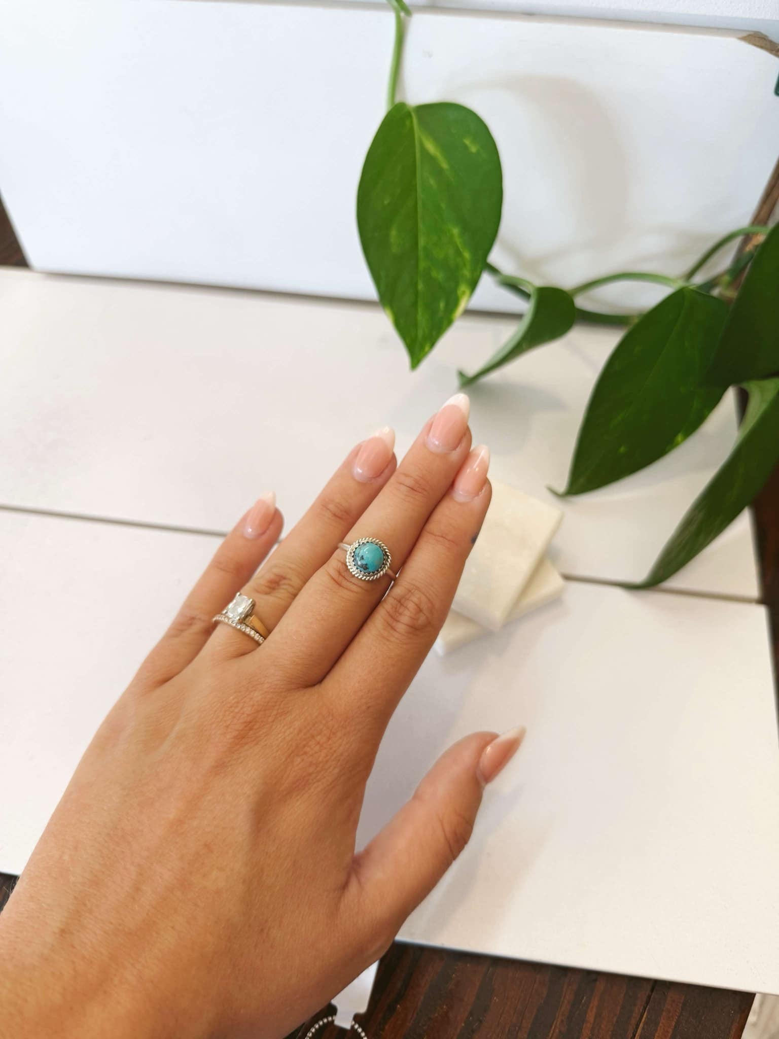 Elevate your everyday style with the Esther White Circle Stone Ring, a simple yet striking piece that pairs effortlessly with any outfit. Handcrafted with care, this Navajo sterling silver ring highlights a single, elegant circular stone for a minimalist statement.
