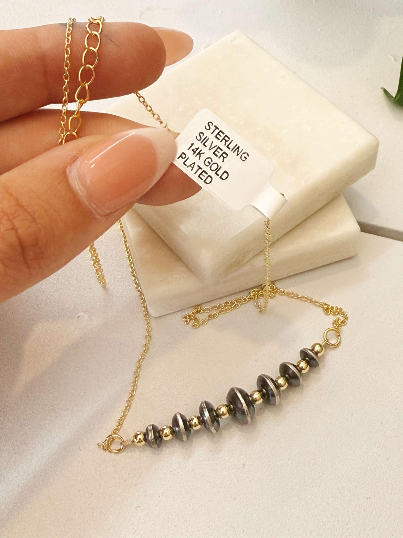 Sophisticated and versatile, the Lunar Glow Necklace features a graduated design of grey beads accented with 14K gold-plated sterling silver. This authentic piece effortlessly elevates both casual and dressy outfits with understated elegance.