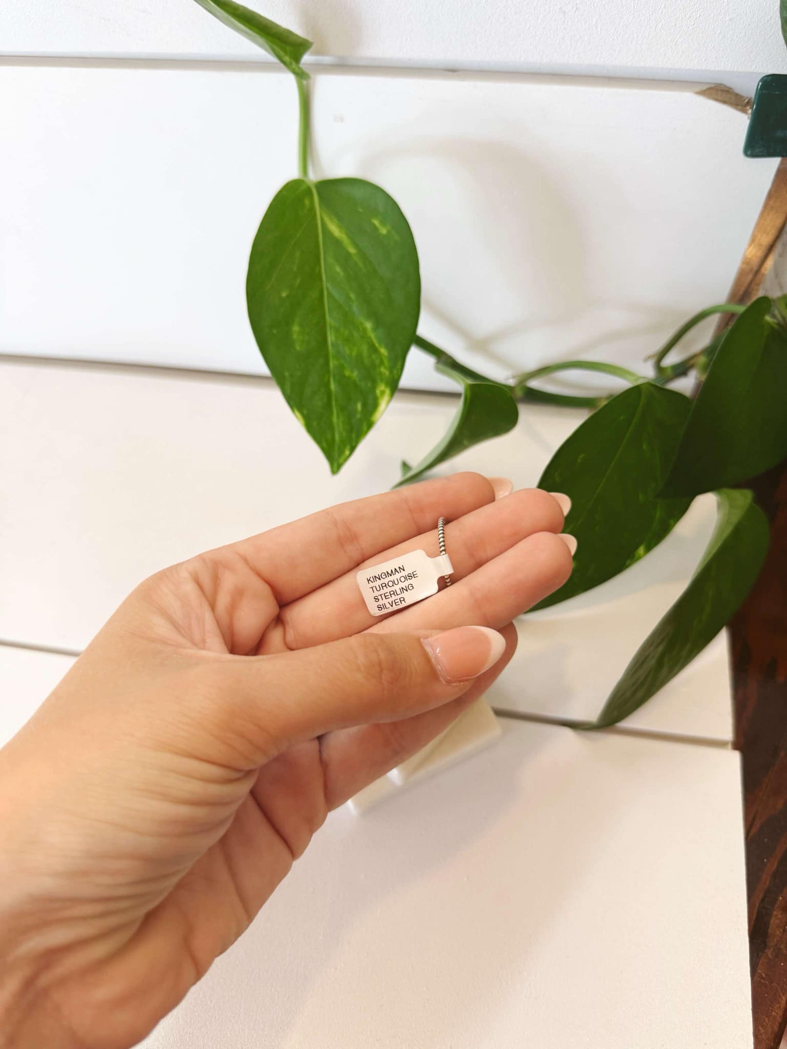 Delicate and timeless, the Skyline Dusk Ring features a dainty Kingman turquoise stone set in sterling silver. Perfect for layering or wearing alone, this piece adds a subtle pop of color and Southwestern charm to any outfit.