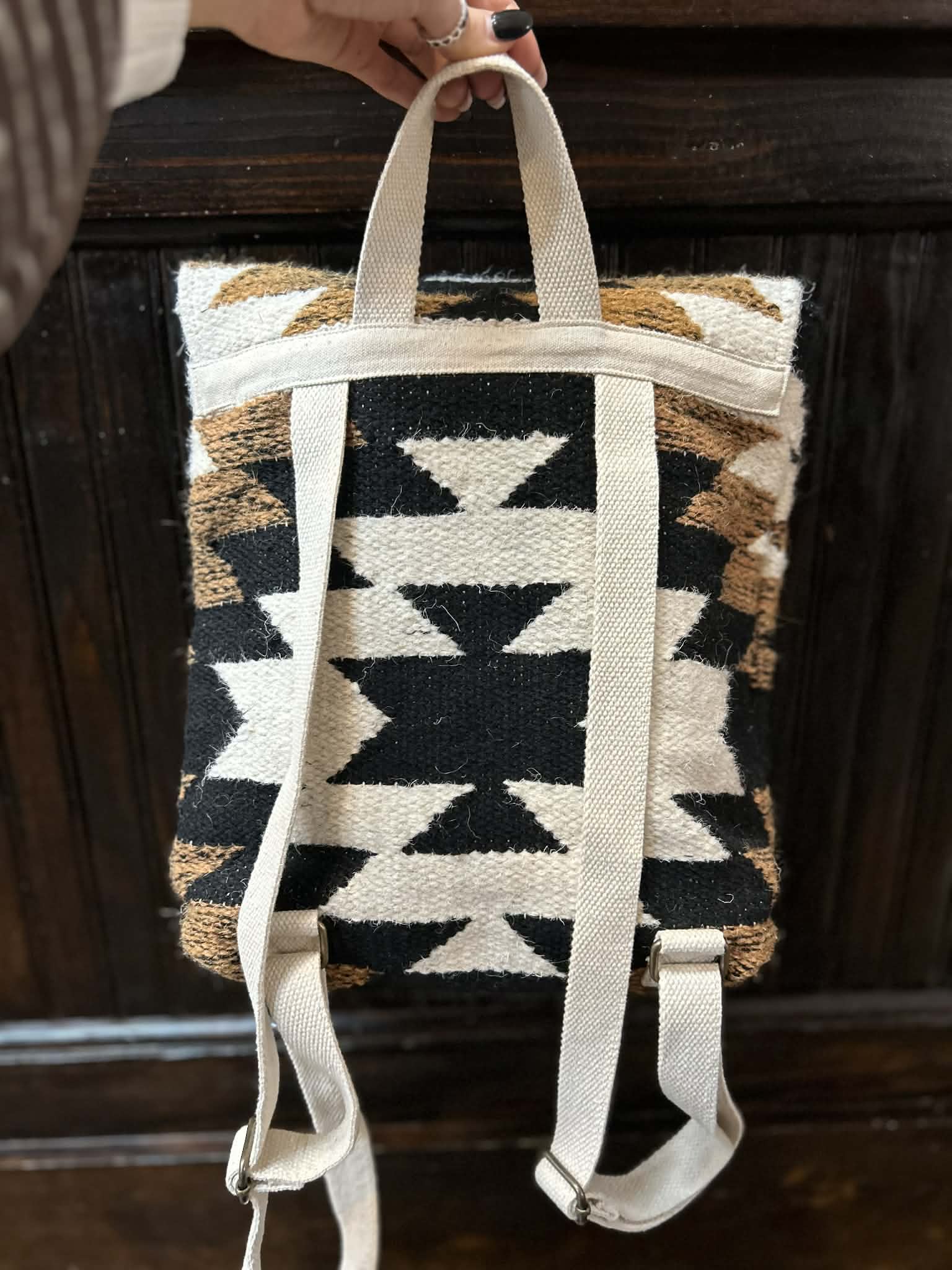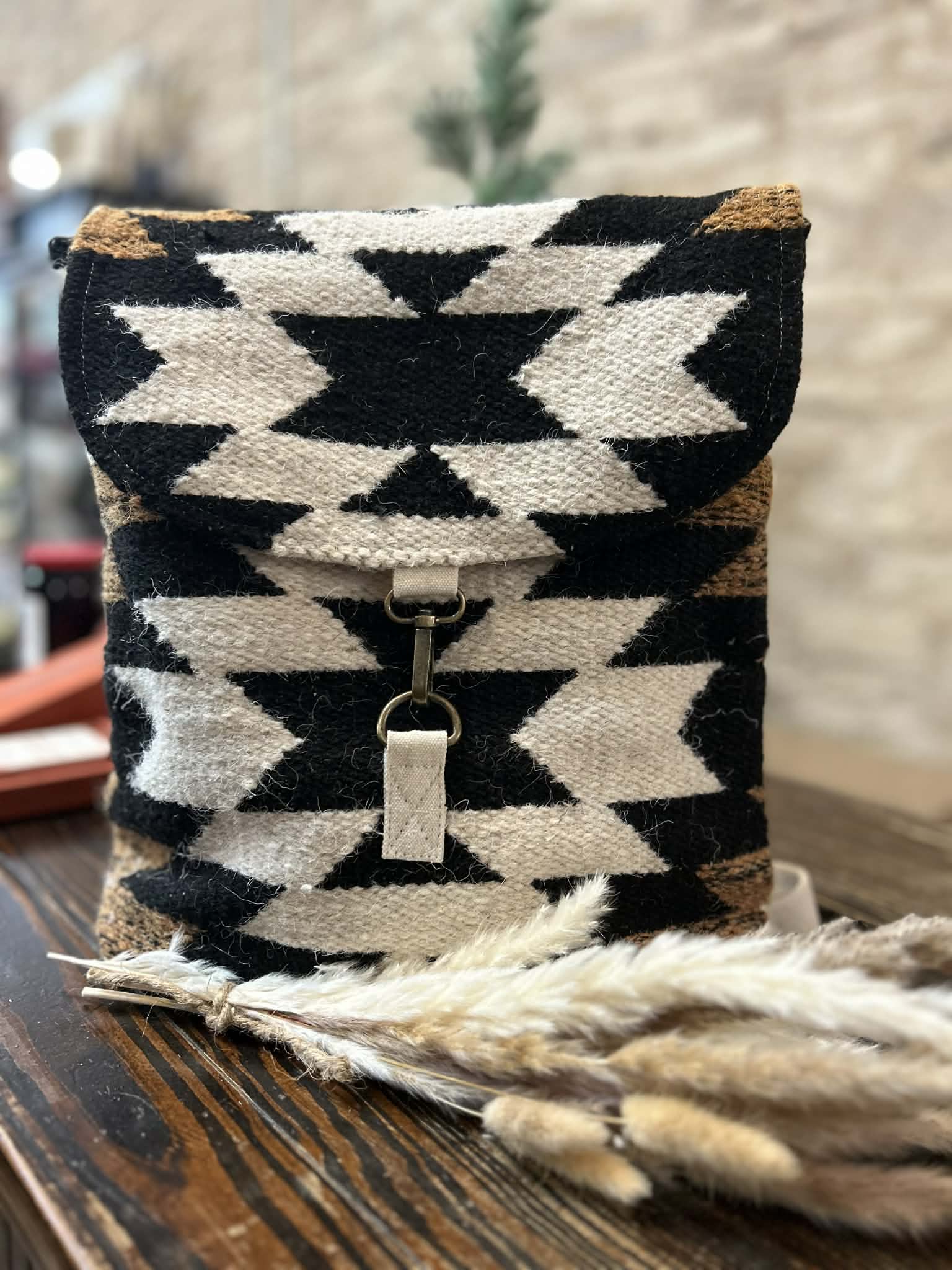 Turn heads with this bold Aztec Backpack! Featuring a black, white, and brown aztec print, a clasp closure to keep your goods safe, and adjustable straps and handle for maximum comfort, this backpack is perfect for your on-the-go life. Live wild and free in style!