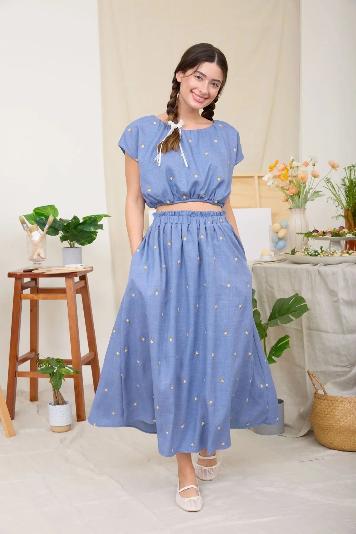 Playful and feminine, this embroidered floral cropped top brings texture and charm to any outfit. The balloon hem and delicate details create a flattering silhouette that’s perfect for dressing up or keeping it casually cute.