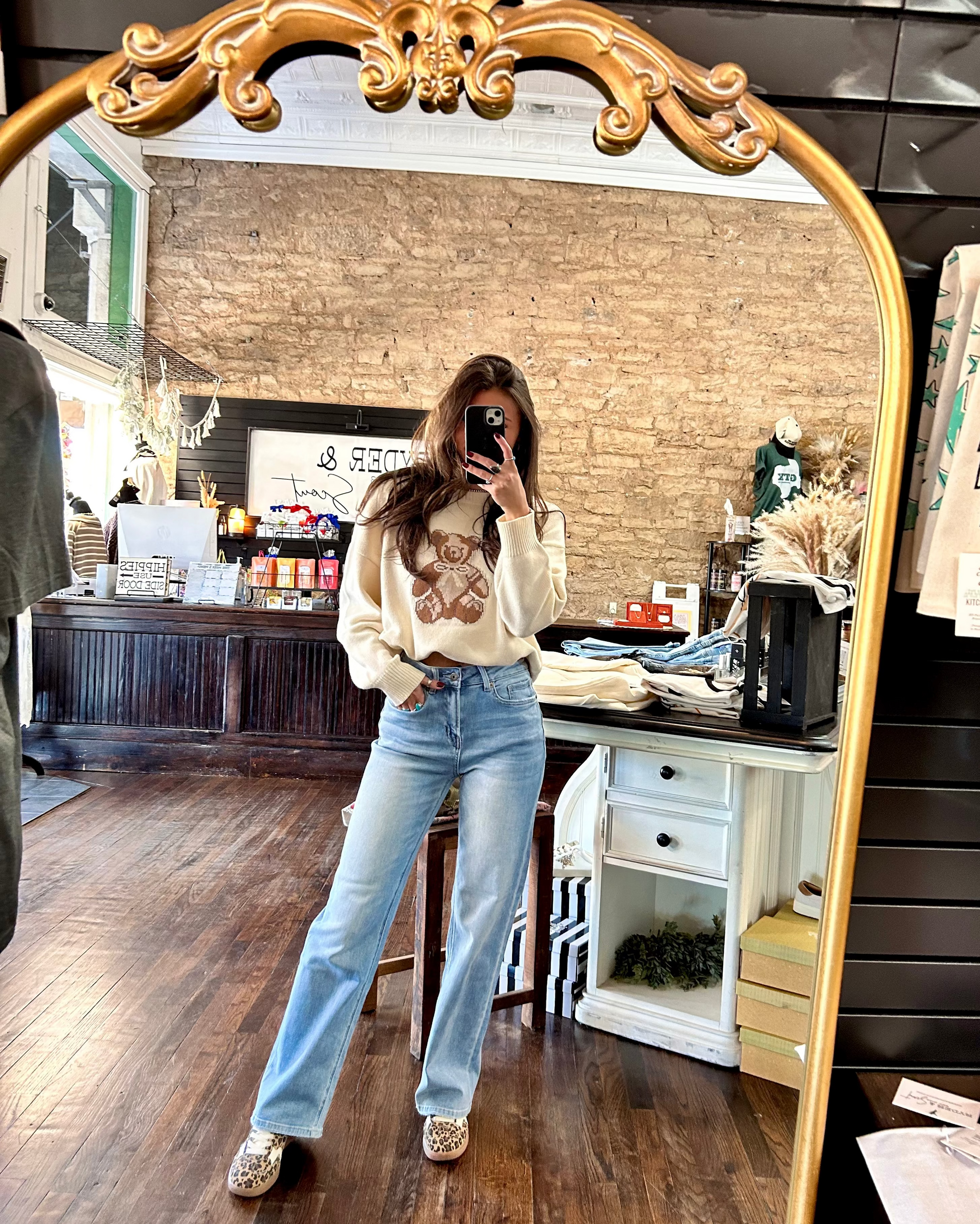 Timberly is shown in a small and Ashlee is shown wearing the medium! I would size up if I was wanting to wear with leggings!