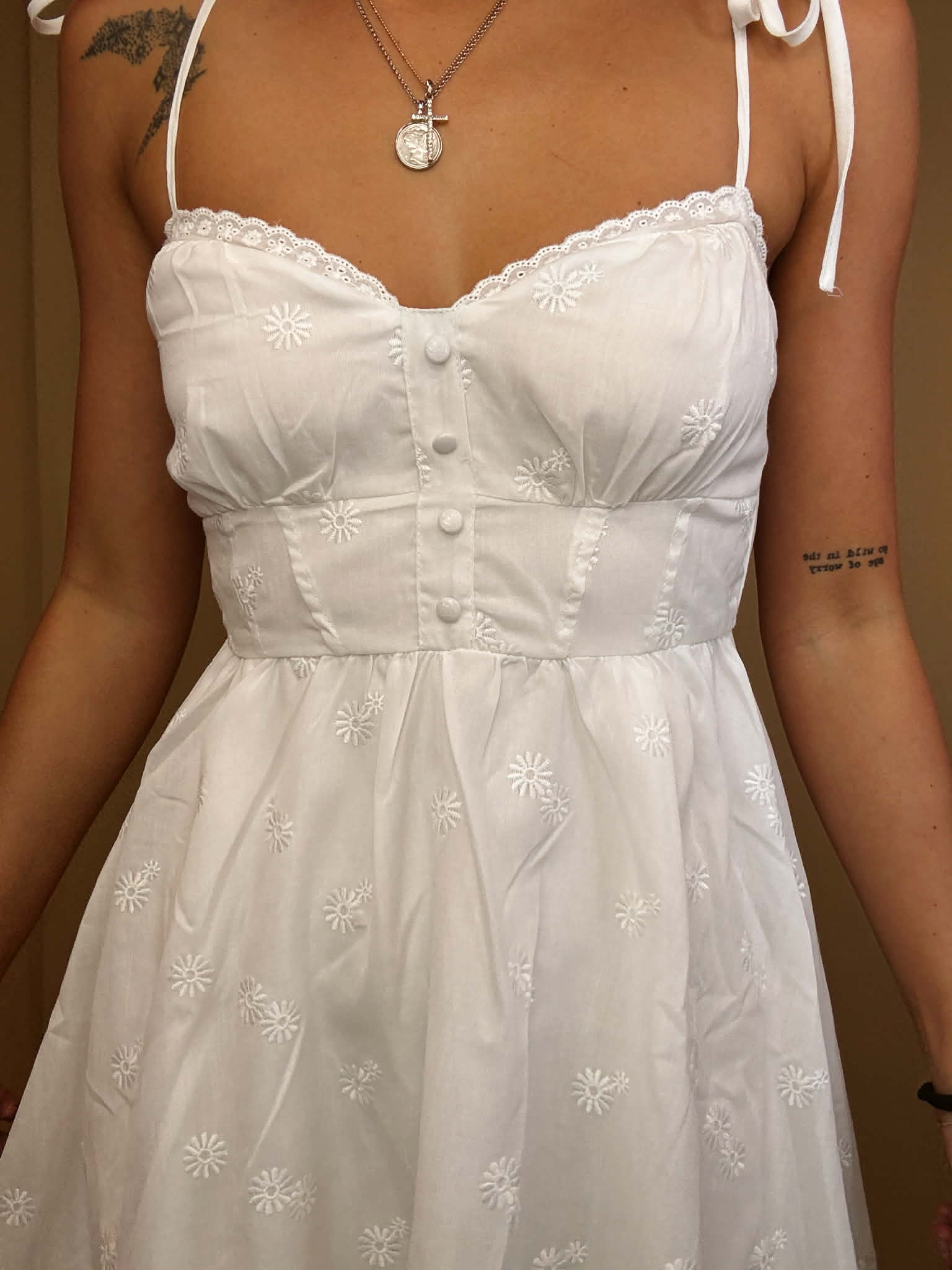 Romantic and feminine with a modern twist, this embroidered mini dress is made for sunny days and special moments. The sweetheart neckline and corset-inspired waist create a flattering, boutique-worthy silhouette.