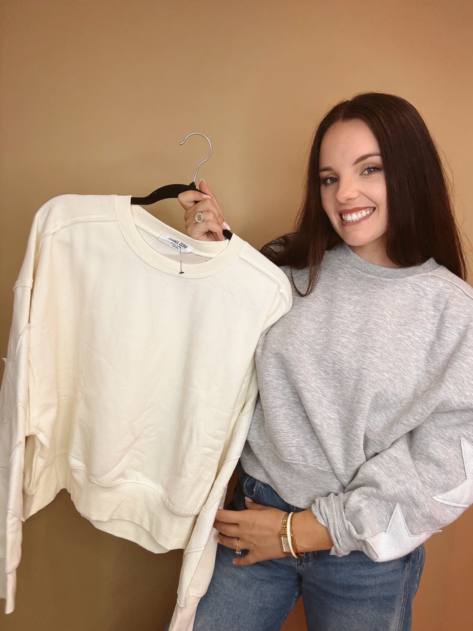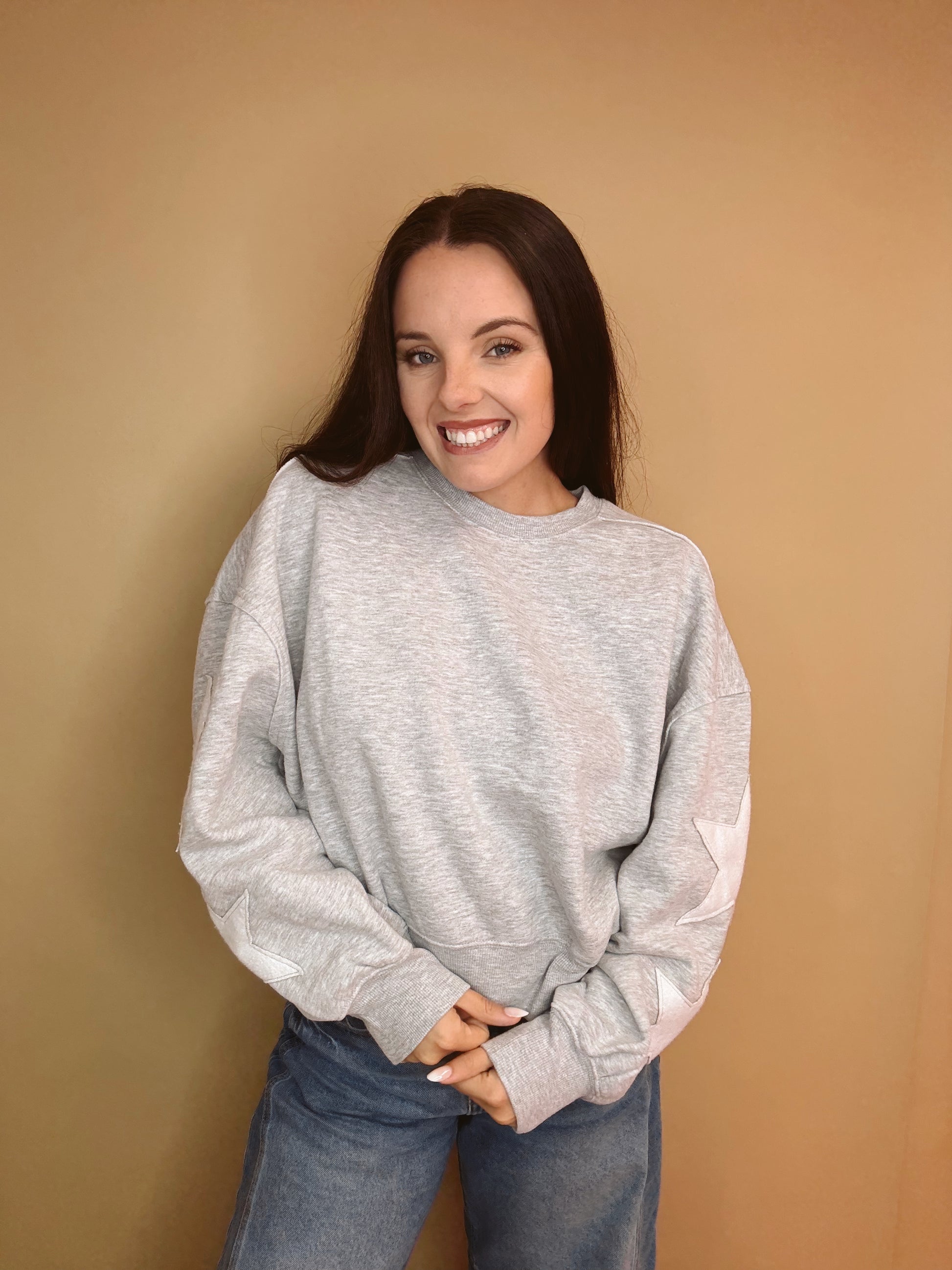 Elevate your everyday style with this crewneck sweatshirt featuring playful star patches along the sleeves. Its relaxed fit delivers both comfort and versatility, making it a staple for every season.