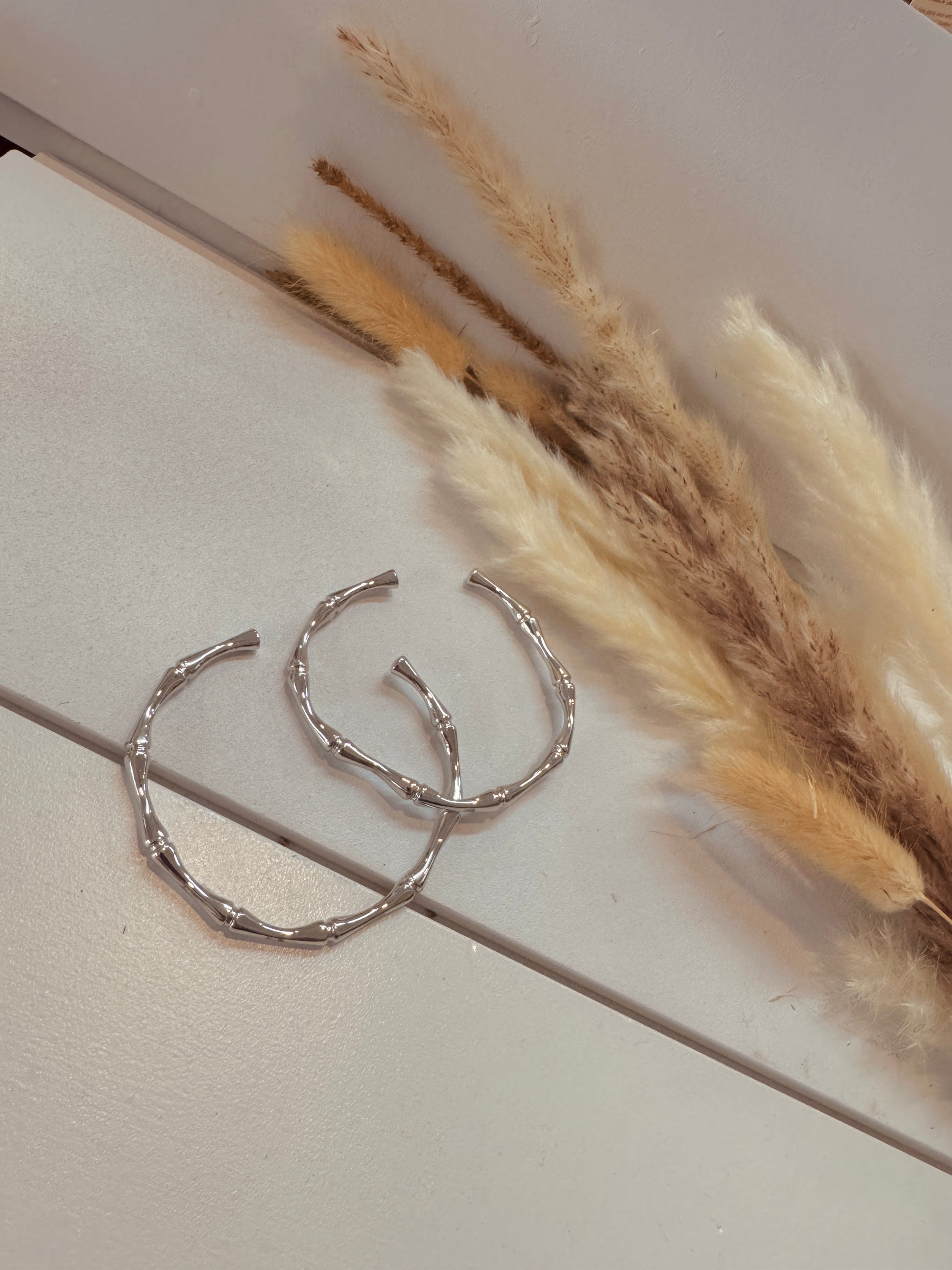 Glossy cuff bracelet with bamboo design.