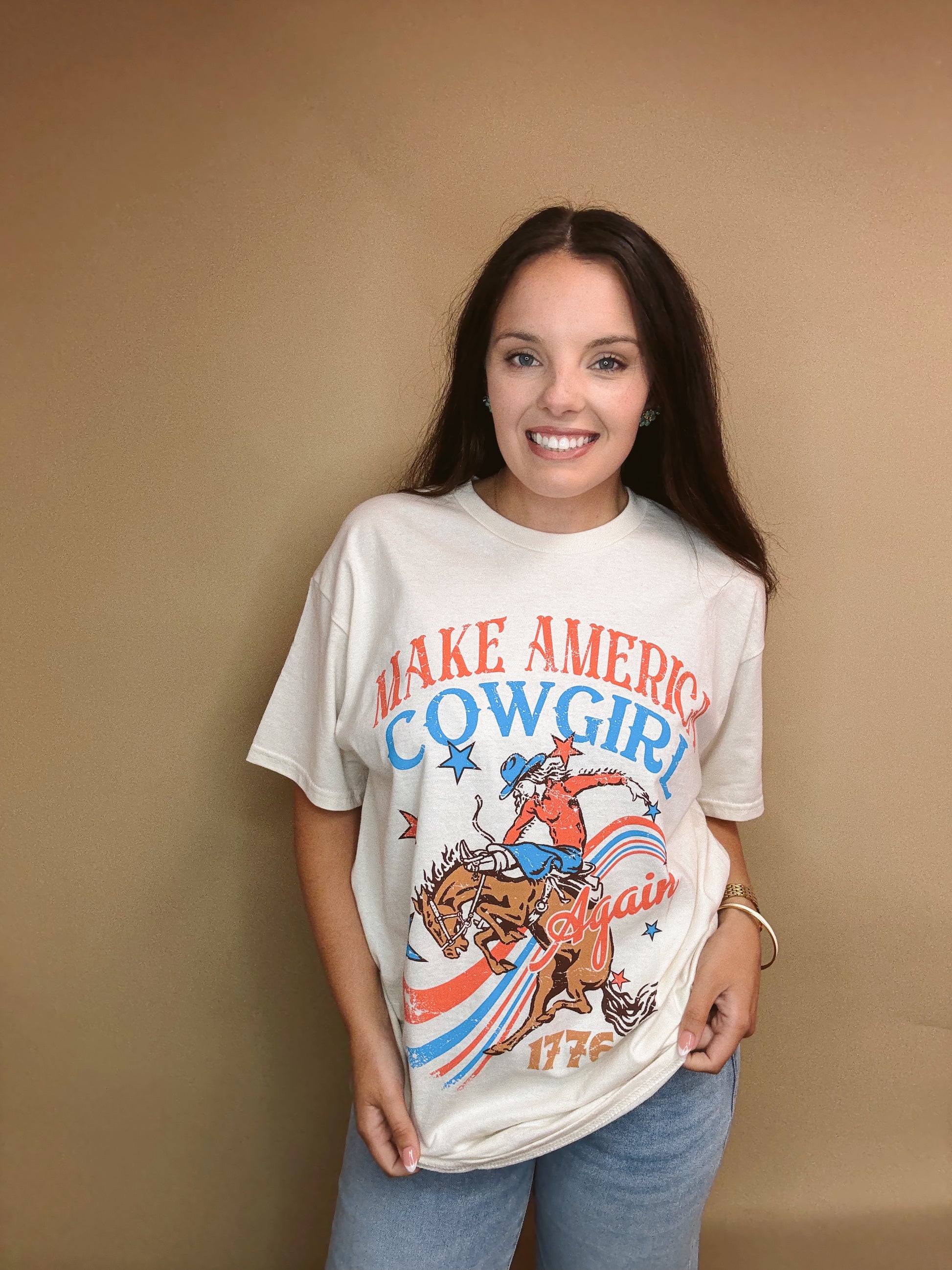 Saddle up, babe — it’s time to bring the yeehaw back to the USA! 🇺🇸 The Make America Cowgirl Again Tee is your go-to for all things red, white, and western 🤍❤️💙 This oversized graphic tee features bold lettering with major cowgirl energy, perfect for the 4th of July, summer BBQs, rodeos, and beyond 🧨🌵
