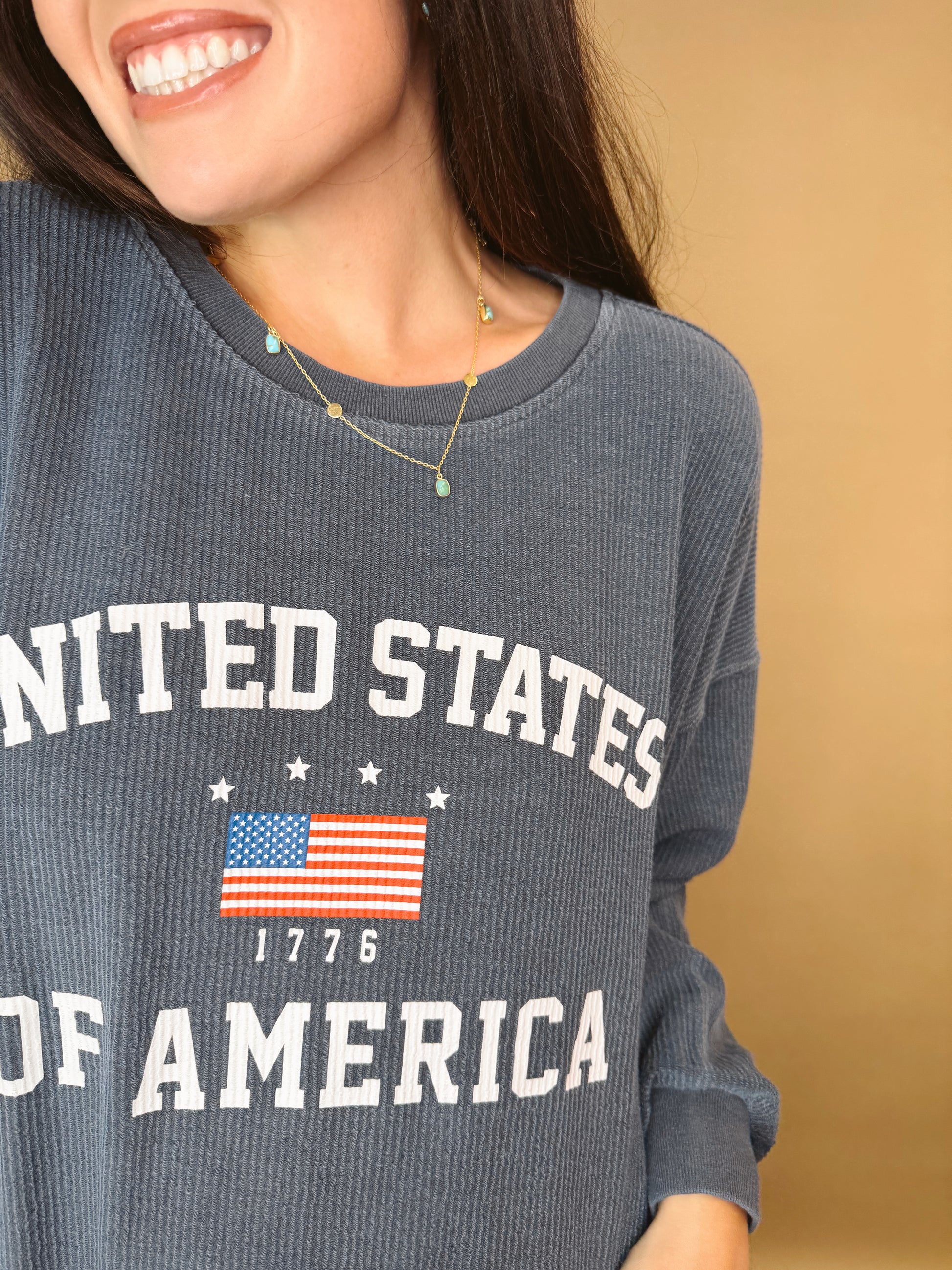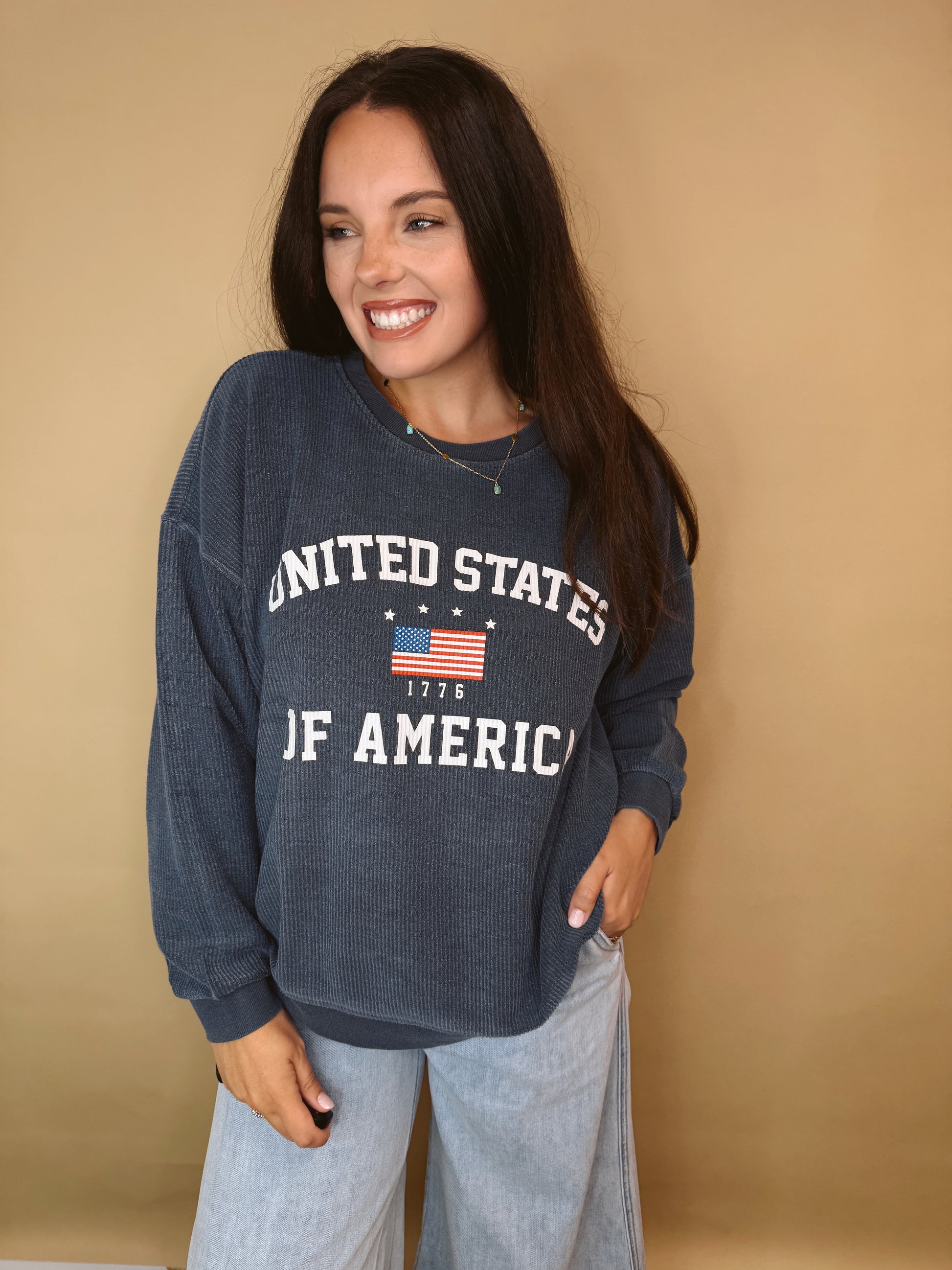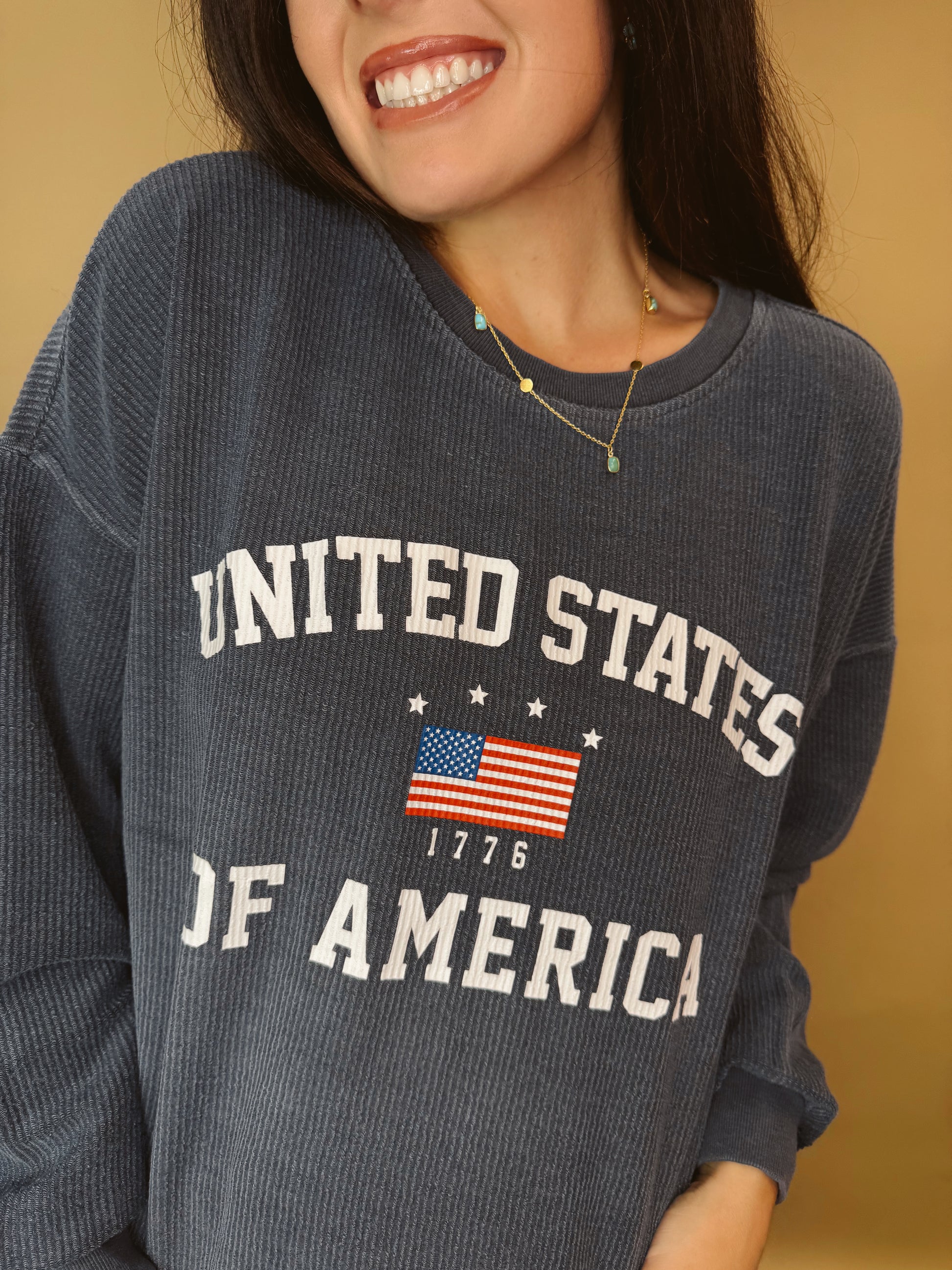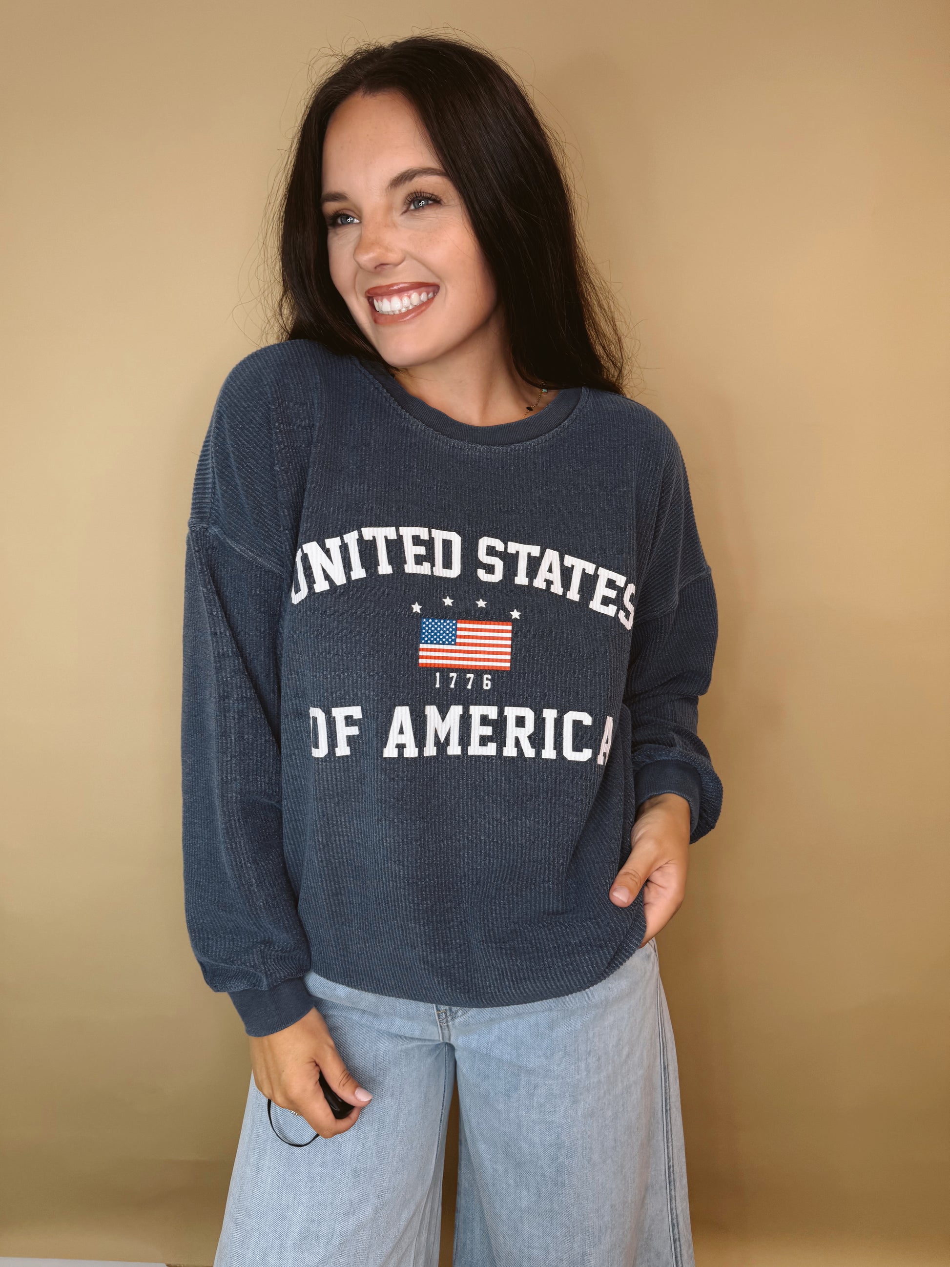 The Midnight Layers Ribbed Top, featuring a United States of America design with an american flag, is your new go-to for effortless layering and everyday style. With its cozy ribbed texture and soft cotton-blend feel, it pairs perfectly with denim, skirts, or under your favorite jacket. USA! 🇺🇸