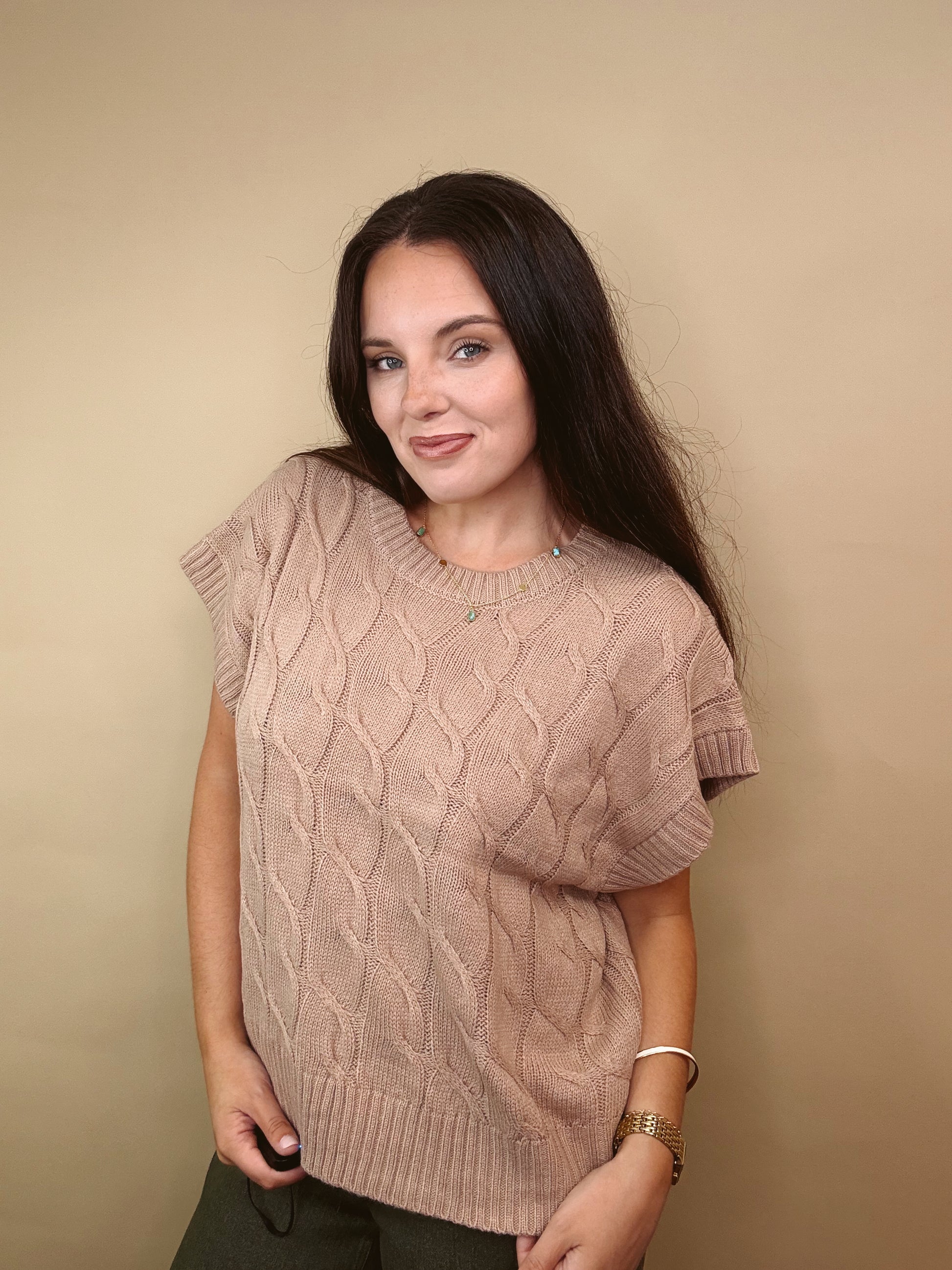 You'll be feeling cozy and looking sweet in this oversized sweater vest, perfect for layering through the seasons. Featuring an eye-catching cable knit design, it delivers style and comfort with every wear.