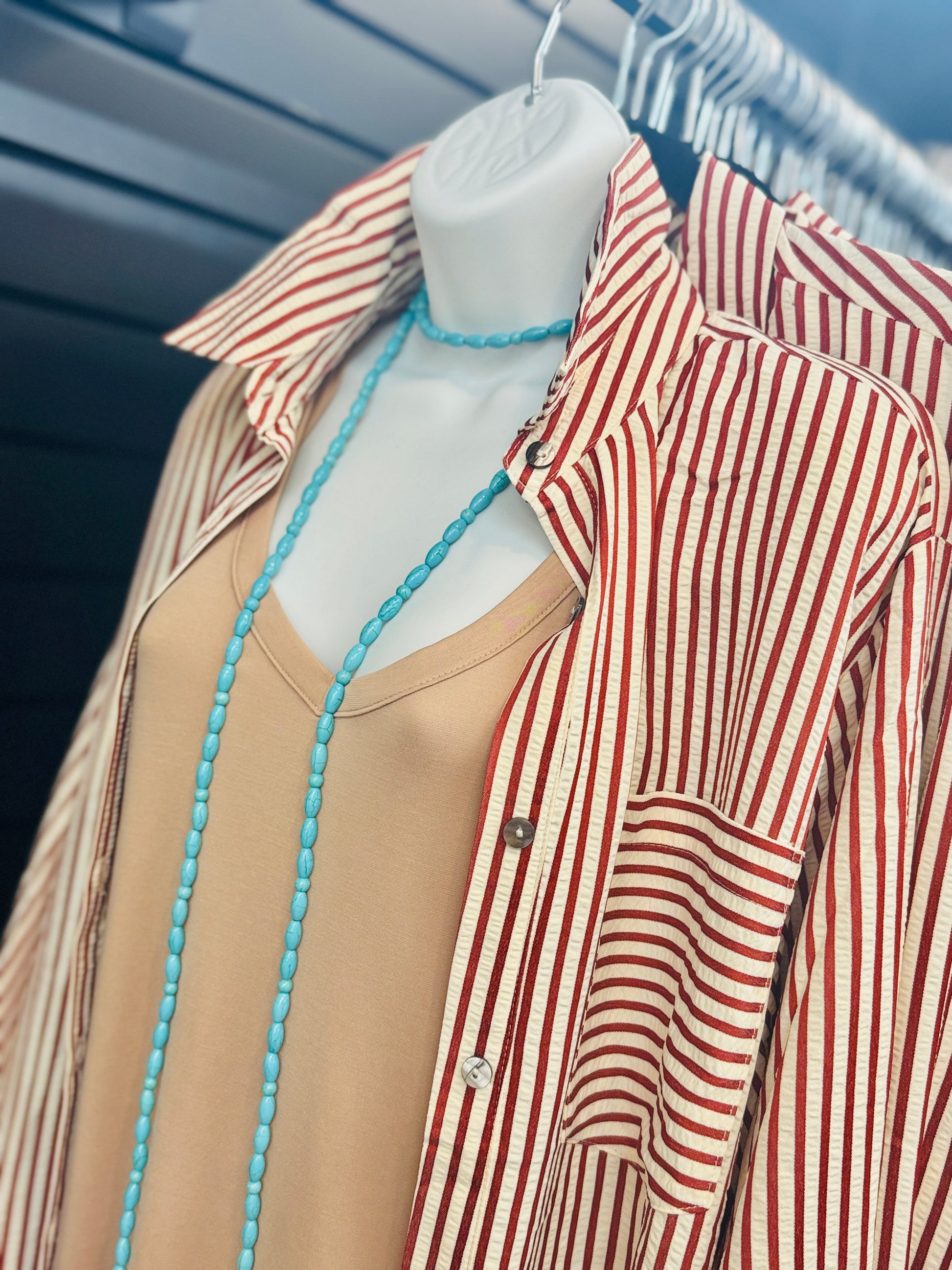 Elevate your everyday style with this textured stripe midi shirt dress, featuring a flattering rounded slit hem for subtle movement. Lightweight and easy to wear, it’s perfect for both casual outings and polished occasions.