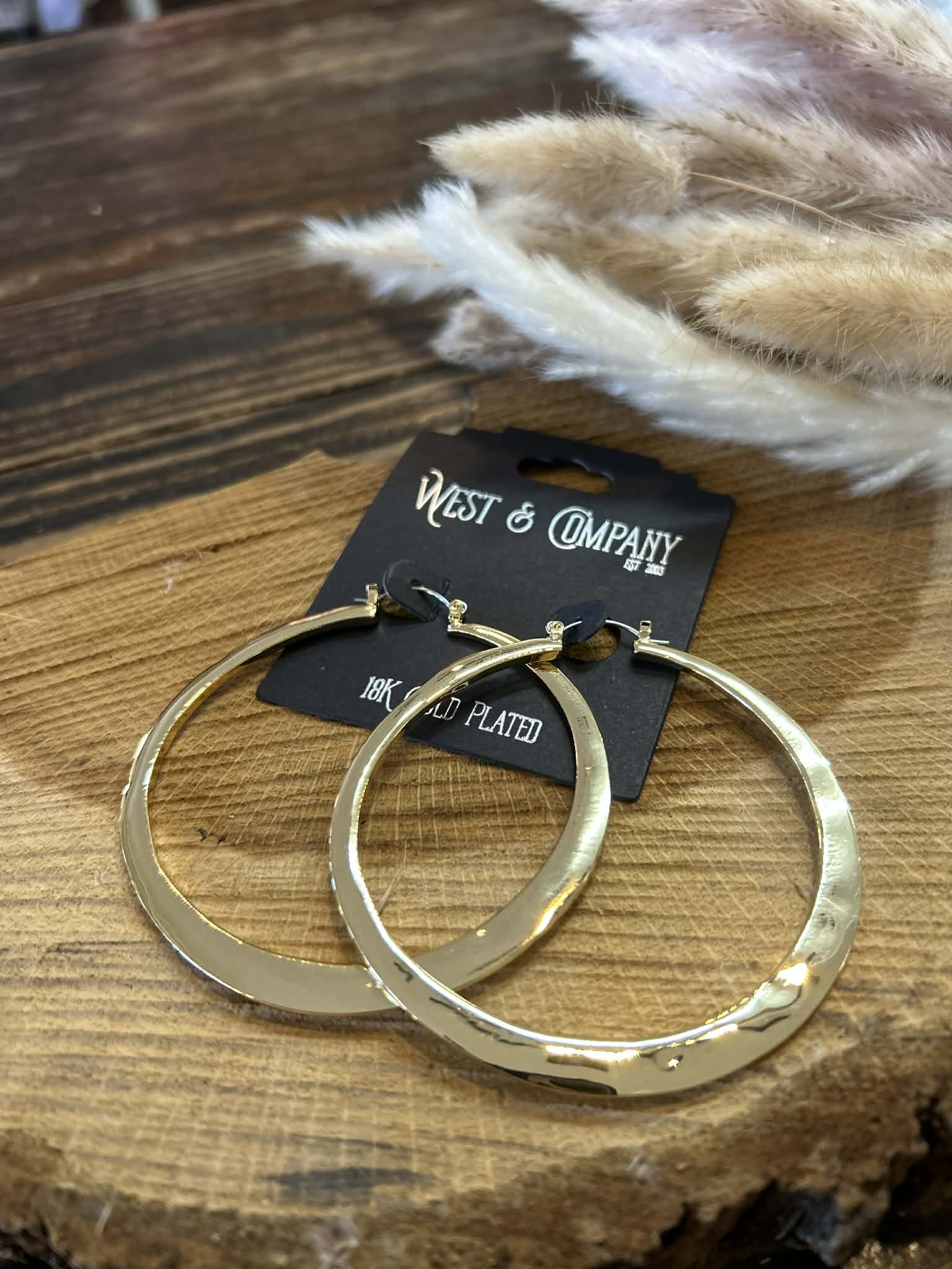 These 2.5" hammered hoop earrings bring a chic, modern touch to any outfit with their sleek, lightweight design. Available in both 18K yellow gold and white gold plating, they offer effortless shine and everyday elegance.
