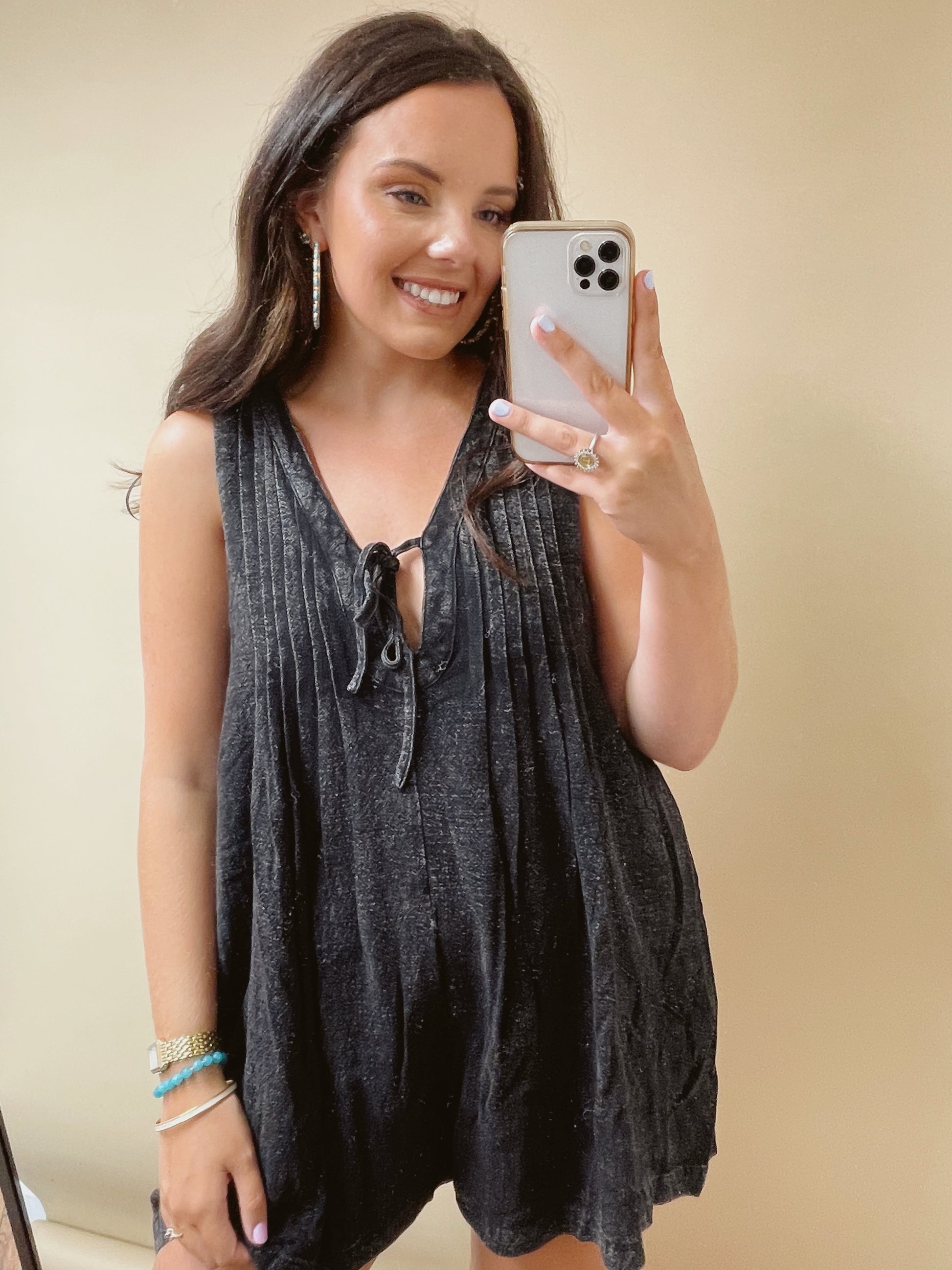 The Jessica Pleated Romper gives you the elegance of a dress with the comfort and ease of a romper—yes, it’s that good. With its mineral-washed finish and flowy pleats, it’s effortlessly cool and perfect for dressing up or down.