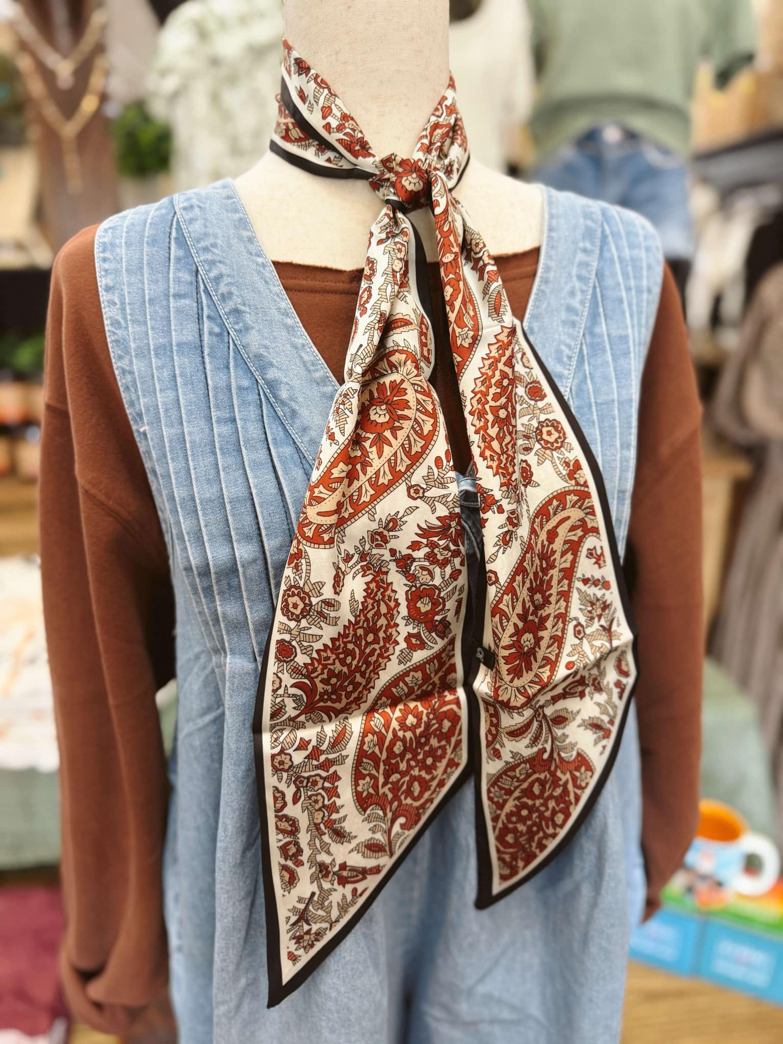 - Can be worn as a neck scarf, headband, wrist tie, or bag accent
