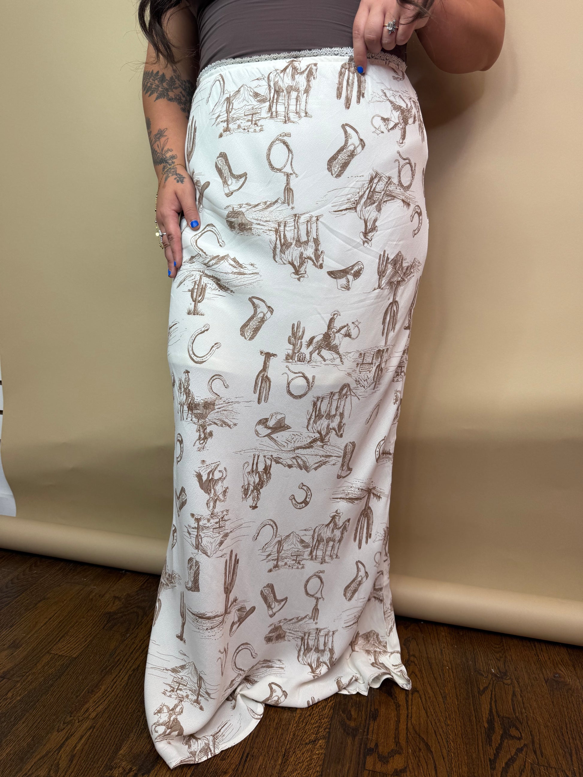 Western Romance Midi Skirt